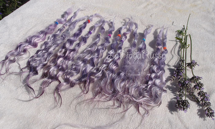 look what today is dried in the sun -lavender mohair in locks for doll hair